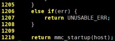 這里的mmc_initialize函數的具體實現是在u-boot-2010.03-FS4412/drivers/mmc/mmc.c中;那么該函數的主要目的實際上是調用mmc_init,mmc_init又是如何實現的?我們接著往下追,mmc_init函數的實現還是在這個文件中。我們的目的是找到mmc被分區的部分為大家解讀,所以對于這個函數其它部分就不做贅述,這里只看該函數后調用的mmc_startup,如下: