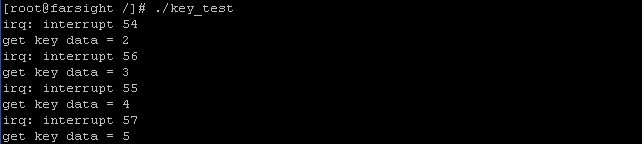 運行測試程序,按下按鍵,可以看到中斷產生并且獲得鍵值。