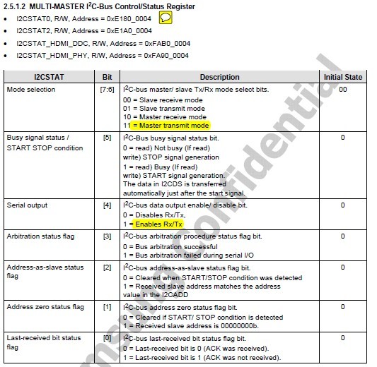 I2C0.I2CSTAT0 = 0xf0;主設備發送,產生start信號