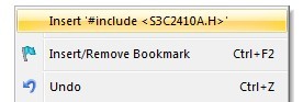 嵌入式開(kāi)發(fā)中我們把常用的寄存器寫(xiě)到一個(gè)頭文件中,每次使用的時(shí)候直接包含就可以。也有很多集成開(kāi)發(fā)環(huán)境會(huì)提供這樣的芯片特殊寄存器頭文件,比如在keil中創(chuàng)建arm7三星s3c2410芯片相關(guān)的工程,點(diǎn)擊鼠標(biāo)右鍵可以添#include <S3C2410A.H>頭文件。但不是所有芯片都支持。