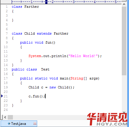 這個(gè)例子非常簡單,有一個(gè)子類Child繼承于父類Father,然后在測試類Test中使用子類引用。調(diào)用子類中的fun方法,執(zhí)行結(jié)果和我們預(yù)料的一樣: