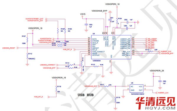 usb hub芯片幾個(gè)關(guān)鍵管腳連接如下: