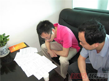 圖五、海輝技術部劉經理一行認真查看了解中心課程內容體系 |