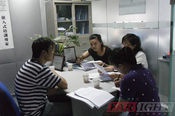 2012年6月26日,對華清遠見上海中心12021期的學員們來講又是一件難忘的經歷。就業主管胡老師有幸邀請到了上海航盛實業有限公司到華清遠見上海中心來現場招聘。雖然12021期學員還沒有畢業,但航盛實業的招聘人員早早的來選擇他們企業所需的人才。學員們也積極配合,都一大早來教室等候面試。