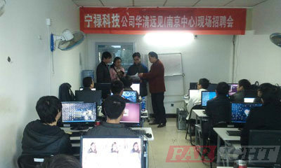 在通過對(duì)華清遠(yuǎn)見的接觸了解,并結(jié)合之前入職公司的學(xué)員表現(xiàn)情況,南京寧祿科技有限公司于2012年11月5日搶先來到了南京中心,對(duì)在校12071、12051期學(xué)員進(jìn)行了2個(gè)小時(shí)左右的現(xiàn)場(chǎng)招聘活動(dòng)。當(dāng)天來到中心負(fù)責(zé)招聘的是公司總經(jīng)理陶總和兩位資深人事經(jīng)理。本次招聘受華清遠(yuǎn)見南京中心的熱烈歡迎,中心副校長郭老師以及就業(yè)部冀老師等分別與負(fù)責(zé)招聘人員進(jìn)行了友好的交談。
