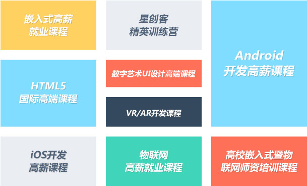 集團緊跟科技發展潮流,專注于高端IT開發人才的培養。目前線下培訓課程涵蓋嵌入式開發、物聯網開發、移動互聯網開發(Android、iOS、HTML5、UI、VR/AR)三大方向。從長期就業培訓到短期高端企業內訓,以及高校師資隊伍培訓,課程涵蓋技術方向廣泛,能夠滿足不同人群的學習工作需求。集團擁有一支超過百人的師資團隊,不乏專家及資深技術開發人員。每年在課程研發、課程更新方面投入巨大的人力物力,目前公開出版教材90余本。在技術實力以及實驗設備配置方面均處于業內地位。