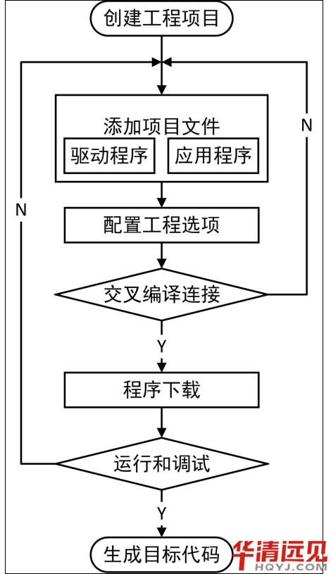 (6)運(yùn)行和調(diào)試:程序下載后,可以啟動(dòng)運(yùn)行,看是否正常工作。如果有問題,連接在線仿真器,借助軟件開發(fā)工具的調(diào)試環(huán)境進(jìn)行斷點(diǎn)和單步調(diào)試,觀察程序操作的詳細(xì)過程。如果應(yīng)用程序運(yùn)行有錯(cuò)誤,返回修改。