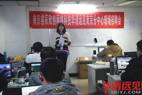 一月南京突降大雪,放眼一片白茫茫,但是這一點都不會縮減南京企業招聘的熱情與學生求職的決心,睿辰欣創與我們華清合作多年,已經建立了良好的合作關系,學生們也都積極的準備筆試題并參與到這次招聘會中,首先是美麗的人事給學生們做企業宣講,對學生提問的問題做一一解答。