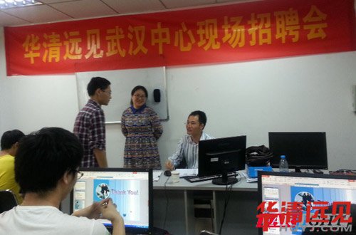 上午9:30分,金華視科技公司研發技術負責人楊總和人事阮小姐風塵仆仆冒著風雨趕到武漢中心辦公樓。剛見面茶水都顧不上喝一杯,楊總就迫不及待的問到:“你們還有多少學生,我的研發團隊需要50人”。后來了解到楊總是昨晚連夜從深圳趕過來組織今天招聘。簡單的詢問了一下,楊總就急切的要求去教室開始招聘會,足以看出咱們學生多么吃香!于是在就業陳晶老師的帶領下,專場招聘會定在1109教室舉行,主要招聘電視軟件工程師和安卓工程師崗位。