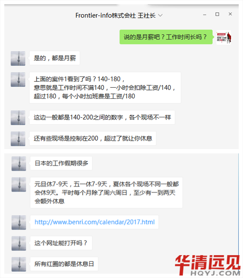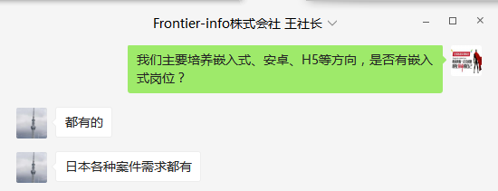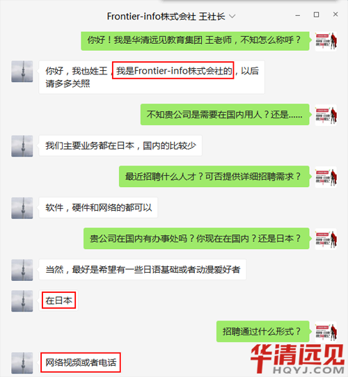 Frontier-info株式會(huì)社的王社長,親自聯(lián)系洽談,通過微信跟華清老師交流。