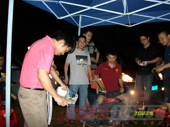 半個小時之后,雨停了。“自己動手,豐衣足食”,大家安置好自己的東西之后,拿著燒烤用品來到籃球場旁邊的大樹底下。架起嶄新的烤爐,放入木炭后,點火的點火,扇煙的扇煙,火光映紅了臉龐,大家情緒高漲。天公不做美,空中又飄起了綿綿細雨。但是大家的心情并未受到影響,仍然忙得不亦樂乎。在漆黑的夜里,“咝咝啦啦”的燒烤聲、歡快的笑聲,細細的雨絲、學員忙碌的身影、汽車的燈光……構(gòu)成了一幅動人的畫面。在路人有些驚異的眼神中,我看到了一絲羨慕。正如一首歌中所唱的“雨一直下,氣氛多么融洽,在同個天空下,你漸漸看到心在變化……”