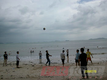 第二日大清早,只見郁郁蔥蔥的大樹,在“莫拉菲”摧殘之下,已是面目全非,枯枝落葉,遍地都是,路邊一片狼籍。但既然來了,總得去看看海吧!于是大家在司機的帶領下,浩浩蕩蕩來到了楊梅坑海灘。打完沙灘排球后,一部分同學下海游泳,一部分同學騎車沿路欣賞美景。一個多小時后,陰云尚未散盡,天色稍霽,小雨又至,只好結(jié)束行程。一起興致勃勃地乘車回到市內(nèi)吃海鮮。