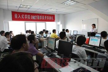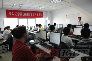 在輕松活躍中,進(jìn)行開學(xué)典禮的第一項(xiàng):由華清遠(yuǎn)見教育科技集團(tuán)院長(zhǎng)季老師為開學(xué)典禮致辭,季老師對(duì)嵌入式行業(yè)的前景及與企業(yè)合作的單位等都簡(jiǎn)單的介紹,并鼓勵(lì)新學(xué)員要努力學(xué)習(xí),調(diào)整自己的心態(tài),充分利用這四個(gè)月的時(shí)間,將自己包裝成一名合格的嵌入式工程師。后送出幾點(diǎn)期望,同時(shí)祝愿學(xué)員學(xué)有所成!