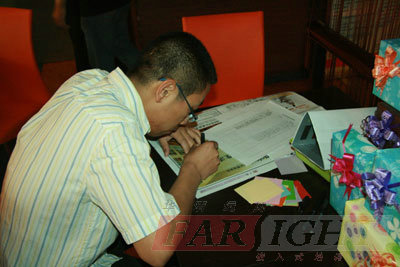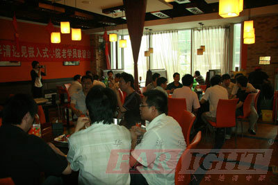 原定下午3:30開始的活動(dòng),剛過2:00就有很多老學(xué)員陸續(xù)到場(chǎng),在現(xiàn)場(chǎng)準(zhǔn)備的簽到表上,老學(xué)員們欣喜地查找著同班同學(xué)的名字,用眼睛快速搜尋著那些曾經(jīng)熟悉的身影。見面之后的一聲“兄弟,黑了,哪里曬去了?”總是會(huì)惹來陣陣會(huì)心的笑聲。“一年(兩年)不見了,兄弟姐妹們還好吧?”“王老師,我們班的女生誰會(huì)來啊?”“哎呦,曾老師,您還是那么gentleman啊!”“老范,這邊、這邊來坐,兄弟們都在這兒呢!”曾經(jīng)四個(gè)月為了同一個(gè)目標(biāo)而打拼的共同經(jīng)歷,讓老學(xué)員們?yōu)檫@次的相聚興奮不已。