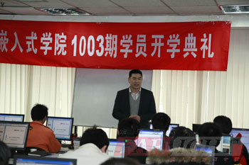 緊接著由華清遠(yuǎn)見教育科技集團(tuán)院長(zhǎng)季老師為開學(xué)典禮致辭,季老師對(duì)嵌入式行業(yè)的前景及與企業(yè)合作的單位授權(quán)等都進(jìn)行了的介紹,特別針對(duì)2010年的十大新興技術(shù)與嵌入式研發(fā)的密切相關(guān)性進(jìn)行了分析,也會(huì)目前大家普遍關(guān)注的物聯(lián)網(wǎng)、云計(jì)算等技術(shù)及應(yīng)用領(lǐng)域進(jìn)行了剖析,讓同學(xué)們看到了更多嵌入式行業(yè)的蓬勃發(fā)展,人才需求如火如荼的現(xiàn)狀。并且季老師也鼓勵(lì)新學(xué)員要努力學(xué)習(xí),調(diào)整自己的心態(tài),充分利用這四個(gè)月的時(shí)間,將自己塑造成一名合格的嵌入式工程師。