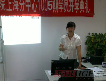 2010年5月18日,上午9點(diǎn)45分,華清遠(yuǎn)見教育科技集團(tuán)上海中心1005期開學(xué)典禮在上海華清遠(yuǎn)見第一教室隆重舉行,華清遠(yuǎn)見上海中心負(fù)責(zé)人胡老師、李老師、任老師、及班主任閆老師均出席了此次開學(xué)典禮。整個(gè)開學(xué)典禮由班主任閆老師主持,整體反響良好。
