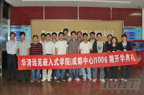 典禮過程中,陶老師的上臺,為各位學員分清了嵌入式行業形勢,展望行業未來和樂觀的發展前景,大大堅定了大家對嵌入式行業發展的決心,加上華清遠見這樣一個良好的平臺,更增強了學員們的信心。而接下來教學總監楊老師生動幽默的發言,也贏得了在場各位師生的認可,他倡導一種無處不在的交流溝通和踏實謙遜于一體的開放的學習心態,一番意味深長的話語,不僅為大家現在的學習生活,更為以后的工作生活作了積極的引導,使人豁然開朗。后,全部學員還逐一上臺作了自我介紹,他們中有的來自山東,有的來自重慶……四面八方;有的是有工作經驗的,有的是在校未畢業的大學生,大家來自不同的地方,不同的家庭,有著不同的經歷,不同的性格,但今天卻因對嵌入式有著共同的愛好與追求,而相聚于華清遠見,既是華清遠見的實力使之,也是大家的緣分所致,相信在華清遠見未來四個月的學習生活中,他們將成為共同奮戰親密無間的戰友,建立起濃濃的兄弟情,深深的朋友誼!后,希望華清遠見成都中心1006期就業班的學員能在華清遠見的團隊中,開心學,用心學,后學有所成,學有所用!