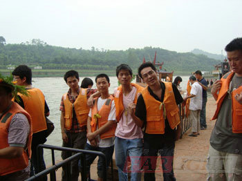 下午,從碼頭出發,我們開始了一段愜意與刺激并具的旅程。大家先是坐上客船,在兩岸綠蔭濃密的河道中乘風而行,貌似有蘇東坡的“清風徐來,水波不興”的點點意境,使得大家興奮不已,按捺不住地離開坐位與清風、水波,做親密的接觸,印下這大自然的恩賜,大家對它留戀之極,但還由不得我們盡情,船就靠岸了。岸上的金佛寺就是我們的目的地,走過一段盤山公路,我們就聽到了寺廟傳來念佛經的聲音,原來我們已經踏入了這佛門靜地。寺廟不是很大,但卻有一尊很大很大的佛像,帶著祈福的心,靜靜地參觀完寺廟完后,我們踏上了返鎮的客船。回到碼頭,我們開始瞄準了一項驚險刺激的項目——坐快艇!在來之前就有聽一位老師說過要玩過隱的項目,就非它莫屬了,果不其然,快艇上時時傳來的一陣陣尖叫聲,咱們的學員也按捺不住,穿好安全服上了快艇。急速行駛中的快艇表演讓艇上的人前俯后仰,左晃右蕩,驚魂未定,也讓岸上的觀眾同樣緊張兮兮,叫聲不斷,笑聲不停,一點兒沒閑……