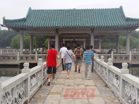 時間過得很快,馬上到了午飯時間了。大家在出博物館門口時,共同留下了這歷史的一刻,進行了合影留念。按照行程安排,下午將去武漢有名的東湖游玩,在去東湖的路上,老師給學(xué)員們買了飲料和點心,隨即又在湖邊飯館擺桌請大家吃午飯,飽餐之后,大家一起來到了武漢東湖聽濤景區(qū)。