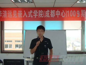 2010年10月8日,華清遠(yuǎn)見教育科技集團(tuán)成都中心1009期就業(yè)班開學(xué)典禮在中心嵌入式第三實驗室隆重舉行。典禮由成都中心班主任周老師主持,現(xiàn)場邀請并出席的嘉賓有:華清遠(yuǎn)見成都中心負(fù)責(zé)人陶老師,專業(yè)講師楊老師,王老師等。
