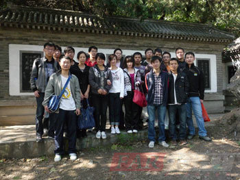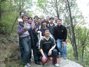 走著走著,在經(jīng)過一個(gè)陡坡之后,我們終于看到望兒臺(tái)。傳說楊六郎與遼兵曾在山下大戰(zhàn),佘太君登山觀戰(zhàn)為六郎助威,因此又叫“望兒山”。在“望兒臺(tái)”佘老太君的塑像前瞻仰時(shí),我們竟突然產(chǎn)生了一種濃郁的思鄉(xiāng)之情——盡管經(jīng)常在外面時(shí)時(shí)電話問候他們,但是秋天來了,天氣漸冷,不知道家鄉(xiāng)的父母現(xiàn)在一切還好嗎? 同學(xué)們簇?fù)碓谕巧希魍本惺軡M山的綠意。這時(shí)李守業(yè)同學(xué)提議大家一起吃柚子。一聽有柚子可吃,同學(xué)們的傷感情懷立刻煙消云散,開始焦急等待守業(yè)同學(xué)分柚子。經(jīng)過一番努力,同學(xué)們圍在一起開心地品嘗著這一絲清香,一絲甘甜。