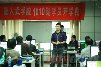開學(xué)典禮第二項(xiàng)是由華清遠(yuǎn)見教育科技集團(tuán)院長季老師為開學(xué)典禮致辭,季老師對(duì)華清遠(yuǎn)見的企業(yè)文化以及也內(nèi)知名的合作企業(yè)情況都進(jìn)行了簡短的介紹,同時(shí)還專門通過對(duì)目前行業(yè)關(guān)注的熱點(diǎn)“物聯(lián)網(wǎng)”、“云計(jì)算”等實(shí)例的分析,讓大家更直接地感受到了嵌入式專業(yè)方向的優(yōu)勢(shì),季老師專門鼓勵(lì)新學(xué)員一定要努力學(xué)習(xí),充分調(diào)動(dòng)起自己的興趣以及積極性,在華清遠(yuǎn)見各位老師的幫助和指導(dǎo)下,真正達(dá)到學(xué)有所成,成為一名合格的嵌入式工程師。后季老師給每一位同學(xué)提出了五點(diǎn)希望,鼓勵(lì)大家都能夠找到適合自己的學(xué)習(xí)方法,達(dá)到有質(zhì)有量的學(xué)習(xí)。季老師的幾點(diǎn)希望包括:1、刻苦學(xué)習(xí),懂得吃苦;2、掌握學(xué)習(xí)方法,勞逸結(jié)合;3、有好的學(xué)習(xí)心態(tài),為自己而學(xué);4、遵守學(xué)院規(guī)章制度,為他人著想;5、通過合理渠道及時(shí)反應(yīng)問題等。
