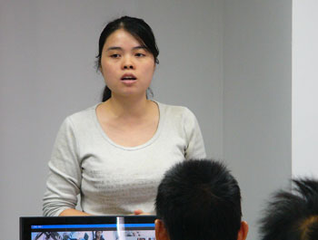 圖二、易老師給新學員介紹培訓的課程體系 |