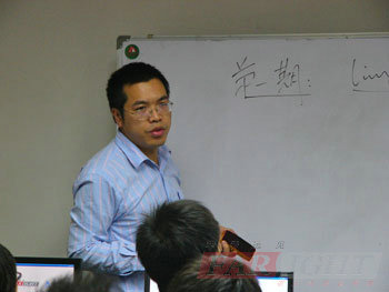 在梁校長的講話結束后,曹老師請上了華清遠見深圳中心的教學總監易老師,易老師系統的給大家介紹了一下嵌入式Linux就業課程四個多月的課程體系。短短的十幾分鐘的時間,易老師幽默的上課風格體現無遺,對課程的熟悉程度,更是讓學員信服不已,不住的點頭,大家對未來四個月的整體課程安排也了然于胸,學員們躍躍欲試的心情表露無遺。