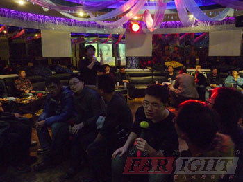 活動當(dāng)天,華清遠見教育科技集團的老師還專門為學(xué)員精心準(zhǔn)備一些糖果、瓜子、花生以及水果等,讓大家充分感受到學(xué)院老師們的細心照顧。K歌之余,我們還一起做起小游戲“猜歌名”,經(jīng)過四組學(xué)員的角逐,后1011期三位學(xué)員獲勝,由華清遠見教育科技集團的總裁助理馮老師為他們頒發(fā)小獎品,同學(xué)們紛紛起哄要求獲獎?wù)甙l(fā)表獲獎感言,頓時現(xiàn)場的氣氛High到更高潮。在一片歡呼笑語中,我們又開始了傳統(tǒng)的擊鼓傳花游戲,讓我們沒有想到的是一向沉默寡言的學(xué)員,此時發(fā)揮無限魅力,大展歌喉,粵語歌典也不在話下。插曲多多,歡笑多多。