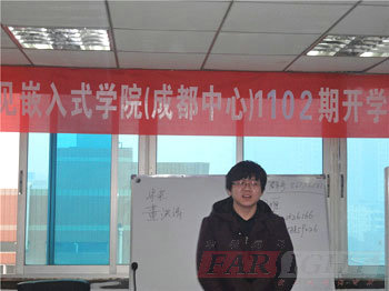 2011年2月21日,借著新年的喜慶,華清遠見成都中心嵌入式Linux&Android就業班1102期的開學典禮,在中心嵌入式第三實驗室隆重舉行。作為成都中心2011年新年后第一個開課的班級,1102期的開學典禮得到了中心各部門老師的高度關注。典禮于上午九點準時開始,由華清遠見成都中心班主任周老師主持,出席當天開學典禮活動現場的嘉賓有華清遠見成都中心負責人陶金華老師,教學負責人楊曉鵬老師,專業任課老師王老師以及中心教務處,市場部,及咨詢部等諸位老師。而對在座的1102期學員來說,經過之前一段長時間C語言基礎的扎實學習后,今天將真正進入到為期四個月的嵌入式LINUX開發課程的學習,大家臉上的興奮之情都溢于言表。