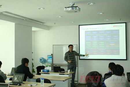 本次培訓內容涉及Android應用層面和Android系統層面,分為基礎和高級兩個班,基礎班涉及安裝和配置Android開發工具、Android用戶界面開發、Android圖形編程、Android應用程序的幾大基本組件、Android數據存儲、Android網絡和通訊等方面內容,高級班涉及到Android NDK 應用開發、Android 2D 3D圖形處理、Android 多點觸摸、Framework、Android系統移植、Android自動化測試等方面的內容。
