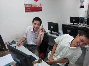 的傳統佳節端午節將至,為了給華清遠見成都中心各位學員營造一種節日的氣氛,成都中心專門為中心的各位學員準備了節日的禮物。今天是臨假前一天,一大早趁著早餐的時間,我們帶著早已準備好的“端午三寶”(粽子,皮蛋,咸蛋),帶著中心全體老師的節日祝福,來到了同學們中間,將他們一一送到了各位學員的手里和心里,向大家表示了節日的問候,頓時反應敏捷的學員們不約而同地表達了對老師們的祝福,并響起了答謝的掌聲和笑聲。簡單的問候,熟悉的食物此刻卻讓這些小伙、姑娘們的驚喜興奮之情溢于言表,中心教室里彌漫了節日的喜慶。