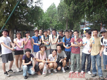 7月16日,華清遠見教育科技集團1104期全體學員,相約在頤和園正門的售票處集合。在前一天放學前,我們相約對于遲到的學員請大家吃雪糕。這是一個美麗的創意!在早晨8:10的時候,就看到有的同學已經來到這里,在翹首企盼中同學們在9點前都各就各位了,但仍有四位同學遲到。同學們非常興奮看著這幾位同學的到來,笑在嘴邊甜在心里——因為我們有雪糕吃了!呵呵! 9:10分,我們出發在頤和園正門合影,露出開心的笑容。大隊出發,前進,天氣很好,心情很好。