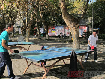 在挨著的三個球場上不時地可以看到:從羽毛球場跑到乒乓球臺進行切磋的,從乒乓球臺,碾轉到籃球場搶籃板的,籃球到乒乓球,乒乓球到籃球,乒乓球到羽毛球,整個球場竄動著我們的人馬,呵呵其實,在跑動中還有一項運動:短跑,也在悄然進行。盡管有短跑,但其實,整個過程大家運動的節奏更像心情一樣,舒緩地在進行。拍照、擺pose、觀戰、調侃、參戰、跑場,東拉西扯、左顧右盼、評頭論足盡情玩笑,是一場好友的聚會,輕松隨意,充滿歡樂。一個上午的時間,大家互相切磋球技的同時,更在一種不同平日的輕松環境中進行交流,感覺更親近了不少。