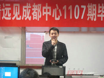 接下來我們開始了隆重的畢業(yè)典禮。首先是成都中心負(fù)責(zé)人陶老師,給本次典禮致辭。陶老師講到,這四個(gè)月里,看見了大家的努力攀登,同時(shí)也欣慰的看見大家收獲了碩果累累的果實(shí)。雖然在這個(gè)途中飽含艱辛,但我們還是披荊斬棘的走過來,取得了終的勝利。雖然今天之后大家都要離開你們夢(mèng)想的搖籃、你們奮斗的基地,踏上真實(shí)的“戰(zhàn)場(chǎng)”,不過大家盡管往前沖華清遠(yuǎn)見一直會(huì)是你們堅(jiān)強(qiáng)的后盾。陶老師的講話讓大家都陪感溫暖和踏實(shí),讓大家明白在未來道路上,自己并不孤單。