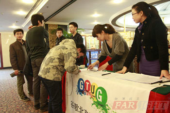 2011年12月10日下午,北京谷歌技術用戶組(簡稱北京GTUG)的系列技術交流活動在北京翠宮飯店再次成功舉辦,華清遠見作為北京GTUG社區的負責人承擔了本次技術培訓講座的組織和實施。考慮到廣大技術愛好者對新發布的Android4.0及底層開發平臺技術的關注,本次技術交流的主題專門定位在Android應用及底層開發的新關鍵技術上,活動是安排在下午1點半開始,但是還不到12:30就已經陸續有很多的開源技術的愛好者陸續到達了會場。活動還未開始可以坐兩百多人的會場就已經滿員了,現場又不得不臨時增加了一些位置,以滿足熱情參與朋友的需求,而一些臨時得到消息過來的朋友,終只能站在過道兩側分享技術專家的經驗。