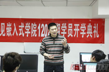 接著大家以熱烈的掌聲歡迎華清遠(yuǎn)見(jiàn)教育科技集團(tuán)院長(zhǎng)季老師為開(kāi)學(xué)典禮致辭,季老師以當(dāng)期普遍關(guān)注的 “物聯(lián)網(wǎng)”、“云計(jì)算”、“電子書(shū)”、“移動(dòng)通訊設(shè)備”等熱點(diǎn)問(wèn)題為切入點(diǎn)對(duì)嵌入式行業(yè)進(jìn)行了深入淺出的分析,并列舉了生動(dòng)的實(shí)例讓大家能夠充分感受到嵌入式行業(yè)未來(lái)發(fā)展的美好前景和迅猛勢(shì)頭。緊接著季老師對(duì)華清遠(yuǎn)見(jiàn)教育科技集團(tuán)的文化、發(fā)展歷程及授權(quán)合作單位進(jìn)行了簡(jiǎn)短的介紹, 后鼓勵(lì)全體學(xué)員充分利用在華清遠(yuǎn)見(jiàn)學(xué)習(xí)的時(shí)間,在華清遠(yuǎn)見(jiàn)各位老師的幫助下,真正達(dá)到學(xué)有所成,終成為一名合格的嵌入式工程師。