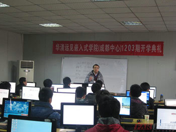伴隨著熱烈的掌聲,我們有請到了成都中心校長陶老師為本次開班典禮致辭。陶老師首先對選擇嵌入式這個行業(yè)的學員表示了肯定,接著對華清遠見的發(fā)展史做了詳細的介紹,并對學院合作的單位等情況做了簡單的介紹。隨后陶老師指出,近幾年嵌入式產業(yè)在全世界各個領域都得到了廣泛的應用,并列舉了生動的例子讓大家能夠充分感受到嵌入式行業(yè)未來發(fā)展的美好前景和迅猛勢頭。我國也已經將嵌入式人才的培養(yǎng)納入了“信息技術緊缺人才培養(yǎng)工程”。后陶老師鼓勵全體學員充分利用在華清遠見學習的時間,在華清遠見各位老師的幫助下,真正達到學有所成,終成為一名出色的嵌入式工程師。