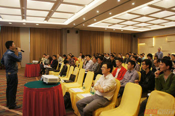 首先來自Google的商業(yè)合作部經(jīng)理劉(wei)緯老師介紹了Android的應(yīng)用前景。通過與Apple Store的比較,介紹了Goole play及AdMob如何建立商業(yè)模式為企業(yè)賺到第一桶金。講解基于Android 4.0的典型應(yīng)用開發(fā)的新技術(shù),結(jié)合具體的案例詳細(xì)講解Android 4.0中的新的API如GridLayout、Switch以及ActionBar、Fragment等新特性,以及如何在Android4.0編寫兼容平板與手機的Android應(yīng)用;下面進行互動環(huán)節(jié),老師的問題讓學(xué)員們紛紛舉手搶答, 現(xiàn)場氛圍迎來了不斷掌聲。