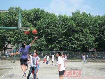 早上9:30,按原計劃我們1204期全體學員在華清遠見成都中心班主任張老師,就業(yè)專員黃老師和咨詢部冉老師的帶領(lǐng)下一起到達川大東區(qū)籃球場。剛到球場,有些學員就積極的打起了熱身賽,還有些學員好奇的去查看我們準備的獎品。我們的帶隊老師則忙著安置好帶來的物品,準備好相機,以便捕捉比賽精彩的瞬間。