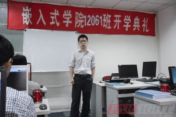 上午9點(diǎn)開(kāi)學(xué)典禮正式開(kāi)始,首先由上海中心負(fù)責(zé)人高老師為開(kāi)學(xué)典禮致辭。高老師首先從為什么要學(xué)習(xí)嵌入式出發(fā),給大家講了幾點(diǎn)建議和要求,接著又講了華清遠(yuǎn)見(jiàn)的幾點(diǎn)優(yōu)勢(shì),以及關(guān)于華清遠(yuǎn)見(jiàn)的一些簡(jiǎn)單介紹,為什么有那么多人選擇華清遠(yuǎn)見(jiàn)。后在學(xué)習(xí)方面也給大家一些學(xué)習(xí)建議,希望大家珍惜這四個(gè)月的學(xué)習(xí),自己好好努力,爭(zhēng)取四個(gè)月后大家都能找到一份理想的工作。