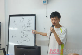 答辯依然在緊張地進行當中,每位答辯學(xué)員依次上臺演示自己四個月以來的學(xué)習(xí)成果,通過精心準備的PPT,流暢的表達,清晰的思路,與各位老師、同學(xué)一起分享自己的畢業(yè)成果與快樂。老師在臺下認真地傾聽學(xué)員們的展示,有針對性的、技術(shù)性的、專業(yè)性的提出有關(guān)的問題,并做出相關(guān)的建議與學(xué)員們交流。在解答一些學(xué)員問題時,答辯老師還親自上臺畫圖講解,讓學(xué)員們聽的頻頻點頭。畫圖講解更使原理形象化,可見老師與學(xué)員們注重的是動手能力與操作能力。答辯過程中,學(xué)員們表現(xiàn)得都非常精彩,思維敏捷,回答條理。