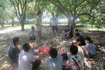 后,我們找到一塊陰涼的地方坐下來做游戲,游戲很簡單,但需要大家的配合和各自的邏輯推理能力。我們在游戲中獲得歡笑,也在游戲中增進彼此的友情,讓大家從身到心的融入到這個大家庭中。游戲結束后,許多學生意猶未盡,還在討論在游戲中我們應該怎么做,應該怎樣配合…