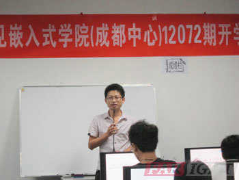 2012年8月6日,華清遠見教育科技集團成都中心12072期學員開學典禮在嵌入式實驗室805隆重舉行。參加本次開學典禮的老師有成都中心校長陶老師,教學部的潘老師、朱老師、姜老師,品質保障部的黃老師等。開學典禮由班主任張老師主持。
