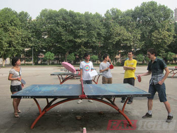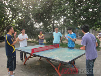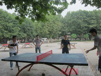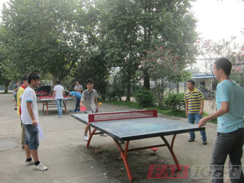 再看我們的乒乓球賽場(chǎng),選手們已經(jīng)等不急了,開始進(jìn)行淘汰賽,兩名乒乓球裁判正認(rèn)真負(fù)責(zé)的進(jìn)行計(jì)分。平常大家都忙于學(xué)習(xí),難得有時(shí)間和機(jī)會(huì)出來(lái)運(yùn)動(dòng),心情都格外的舒暢,打起球來(lái)也是信心十足,更有一些乒乓球高手,深藏不露,甚至還有級(jí)選手,可憐我們某些業(yè)余的學(xué)員好幾年都沒有碰過(guò)乒乓球拍,三局兩勝的比賽,剛比了兩場(chǎng)就大比分遭遇淘汰,本以為他會(huì)有些失落,卻看到他俏皮對(duì)正在拍照的班主任張老師做了個(gè)勝利的手勢(shì)。呵呵,和高手過(guò)招,雖敗猶榮,而且我們是友誼第一,比賽第二嘛。
