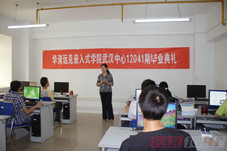 2012年8月30日,華清遠見教育科技集團武漢中心迎來了第一期學生的畢業典禮。參加本次典禮的有中心校長賀老師、教學部苗老師、項目指導倪老師以及就業指導袁老師等。