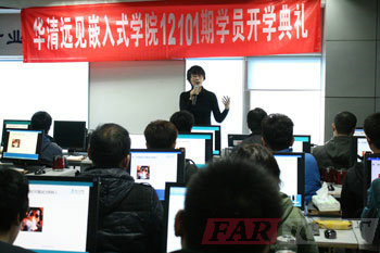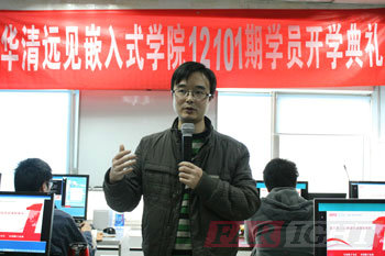 接著大家以熱烈的掌聲歡迎華清遠見品質保障部總監關老師為開學典禮致辭,關老師對華清遠見教育科技集團的企業文化、發展歷程及授權合作單位進行了簡短的介紹,并對當嵌入式行業的優勢和發展的現狀進行了分析是同學們對嵌入式有了更進一步的了解。同時關老師也鼓勵12101期的學員要努力學習,充分調動起自己的興趣和學習積極性,在華清遠見各位老師的幫助下,真正達到學有所成,終成為一名合格的嵌入式工程師。后關老師也給每位同學提出了幾點希望,希望同學們能夠迅速找到適合自己的學習方法,真正做到有質有量的學習。