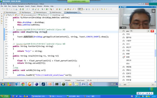 11月28日晚,本次3G移動開發名家大講堂的第二講在眾多學員的熱切期盼中正式開始了,由華清遠見高級講師,黃老師主講,黃老師具備8年以上的研發經驗,三年培訓經驗,擅長面向對象和數據庫編程、熟悉多媒體、傳感器、設備編程、數據存儲等應用技術,曾主持和參與行政服務中心系統,孝感電力信息遠程采集系統,平板點菜系統的等多個成功商用系統的研發, 2008年開始利用androidOS構造出多種移動應用,擁有十分豐富的Android應用開發經驗。此次講座他系統詳盡地為大家講解了Android應用程序之WebApp開發實戰。