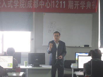 | 圖三、成都中心朱老師介紹學習方法 | 圖四、成都中黃老師講解就業相關事宜 |