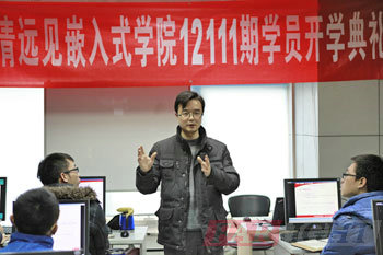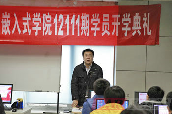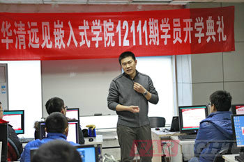 接著大家以熱烈的掌聲歡迎華清遠(yuǎn)見教育科技集團院長季老師為開學(xué)典禮致辭,季老師對華清遠(yuǎn)見教育科技集團的文化、發(fā)展歷程及授權(quán)合作單位進行了簡短的介紹,并對當(dāng)前普遍關(guān)注的熱點“物聯(lián)網(wǎng)”、“云計算”、“電子書”、“移動通訊設(shè)備”等進行了逐一的分析,并舉例對“智能房屋”、“智能交通”等讓大家能夠充分感受到嵌入式行業(yè)的優(yōu)勢和迅猛發(fā)展的現(xiàn)狀。同時季老師也鼓勵12111期的學(xué)員要努力學(xué)習(xí),充分調(diào)動起自己的興趣和學(xué)習(xí)積極性,在華清遠(yuǎn)見各位老師的幫助下,真正達(dá)到學(xué)有所成,終成為一名合格的嵌入式工程師。后季老師也給每位同學(xué)提出了幾點希望,希望同學(xué)們能夠迅速找到適合自己的學(xué)習(xí)方法,真正做到有質(zhì)有量的學(xué)習(xí)。
